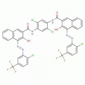 Engleski pseudonim: Pigment crveni 242; PR242; Sandorin Scarlet 4RF; 2-naftalenkarboksamid, N, N '- (2,5-dikloro-l, 4-fenilen) bis- [4 - [[2-kloro-5- (trifluorometil) fenil] azo] -3-hidroksi-3-hidroksi -; (4Z, 4'E) -N, N '- (2,5-diklorobenzen-l, 4-diil) bis (4 - {[2- kloro-5- (trifluorometil) fenil] hidrazono} -3-okso- 3,4-dihidronaftalen-2-karboksamid); 4- [2-kloro-5- (trifluorometil) fenil] azo-N- [2,5-dikloro-4 - [[4- [2-kloro-5- (trifluorometil) fenil] azo-3-hidroksi-naftalen -2-karbonil] amino] fenil] -3-hidroksi-naftalen-2-karboksamid; N, N '- (2,5-diklor-1,4-fenilen) bis [4 - [[2-kloro-5- (trifluorometil) fenil] azo] -3-hidroksinaftalen-2-karboksamid] Broj CAS: 52238 -92-3